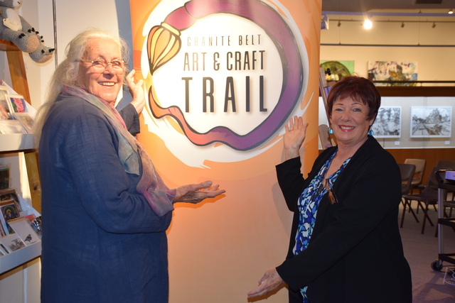 GBART President Krishna Heffernan and committee member Barbara Balkwill shared plenty of smiles at the unveiling of the 2025 Granite Belt Arts Trail program. (Samantha Wantling: 498688)