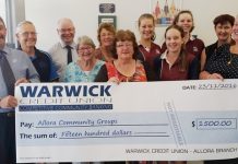 WARWICK Credit Union CEO Lewis von Stieglitz was delighted to announce a further $1500 in grants to the Allora community last Wednesday, 30 November.